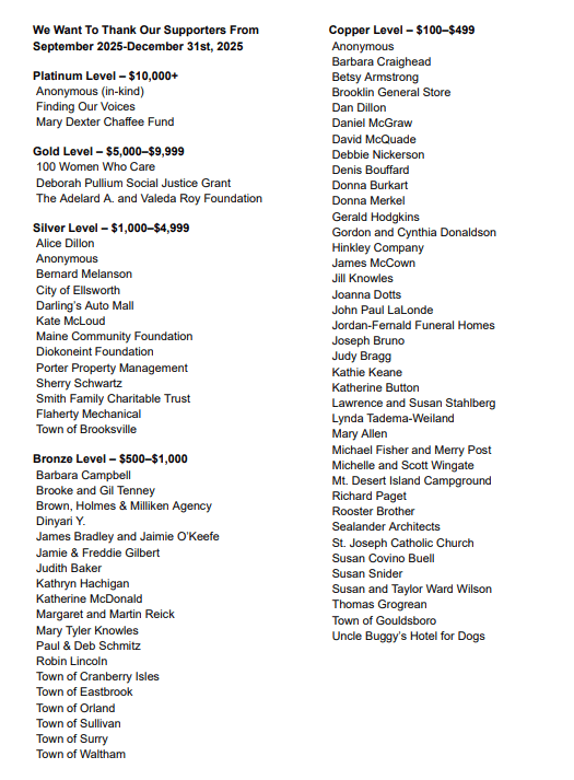 Without the support of the Witham Family Hotel Charitable Fund and Machias Savings Bank, FFCC could not continue aiding homeless families in Hancock County. They have been our Ruby Dinner Sponsors for three years in a row: 2025, 2024 and 2023.